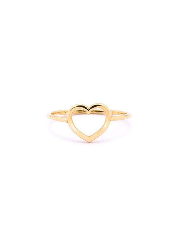 Anello con cuore vuoto piccolo in oro giallo 18kt. Altezza cuore 0,8 cm.