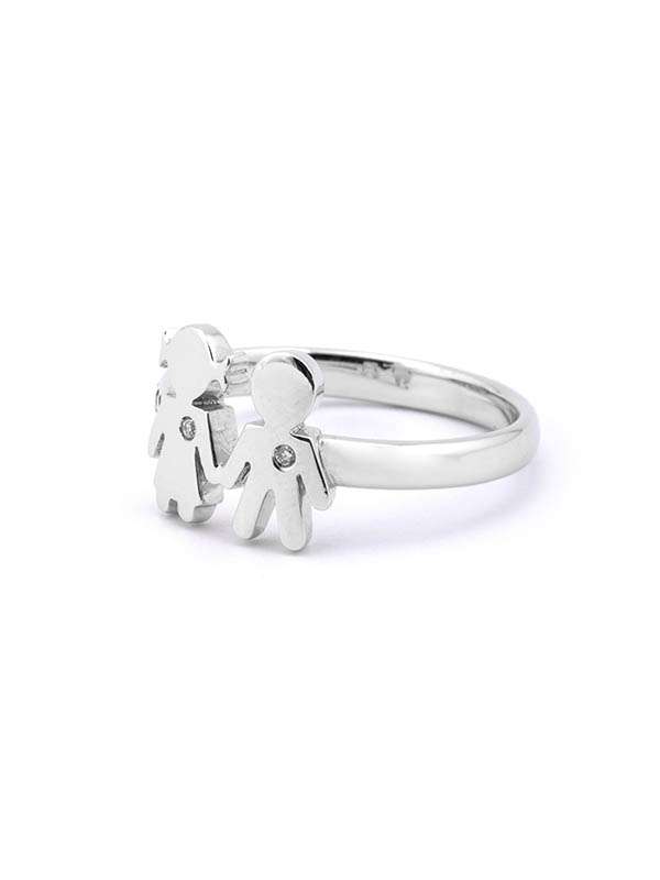 Gioiello firmato Crivelli. Anello Easy in oro bianco 18kt con BIMBI in oro bianco 18kt con diamanti taglio brillante. Dimensione bimbi 1cm.