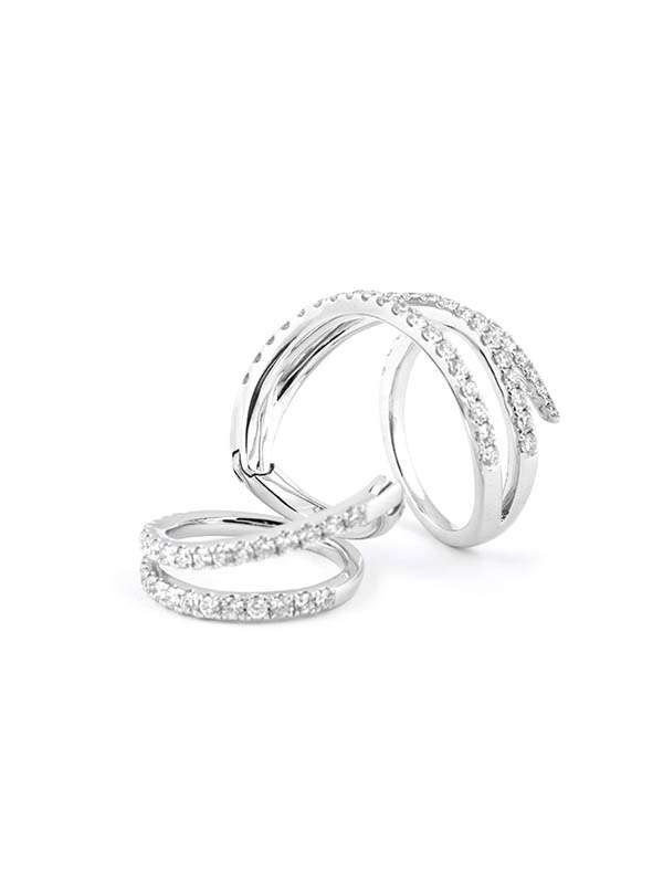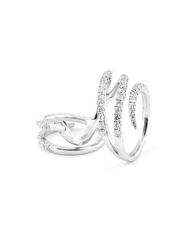 Gioiello firmato Crivelli. Anello in oro bianco 18kt a serpentina con diamanti. Anello fantasia così chiamato perché si caratterizza per il proprio design e per i materiali che interagiscono tra loro. Questo è realizzato in oro bianco 18kt e diamanti naturali taglio brillante. Il numero delle pietre varia in base alla proporzione a alla misura. Gioiello realizzato in Italia. Per qualsiasi necessità o richiesta particolare, o per prenotare un appuntamento in negozio per valutare il prodotto di persona, non esitate a contattarci, siamo a vostra disposizione. Misura S.