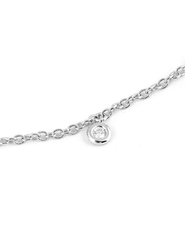 Gioiello firmato Crivelli. Bracciale in oro bianco 18kt con 5 diamanti bianchi taglio brillante per un totale di carati 0,15 colore F purezza SI1. Catena a maglia rolò e anellini per la regolazione della lunghezza. Chiusura a moschettone. Peso oro 18kt gr. 2,30.