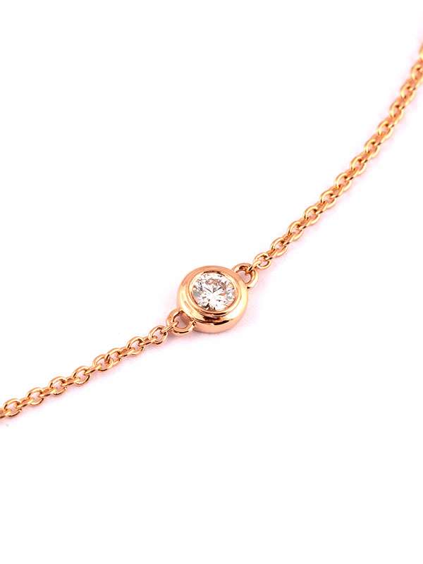 Gioiello firmato Crivelli. Bracciale in oro rosa 18kt con un diamante taglio brillante per un totale di carati 0,05 colore G purezza SI1. Catena a maglia rolò cm 17,5. Chiusura a gancetto. Secondo anellino per la regolazione della misura. Peso oro 18kt gr. 0,90.
