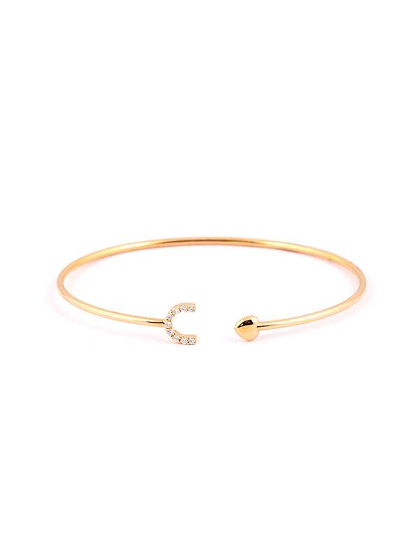 Gioiello firmato Crivelli. Bracciale rigido in oro rosa 18kt con cuore e lettera C di diamanti bianchi.