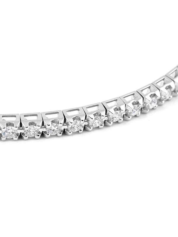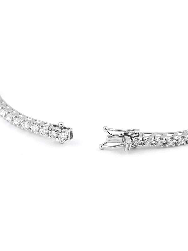 Gioiello firmato Crivelli. Bracciale tennis in oro banco 18kt con 55 diamanti bianchi per un totale di carati 2,50 colore E purezza SI1. Lunghezza 17,5cm. Chiusura a scomparsa e fermaglio di sicurezza. Peso oro 18kt gr. 10,30.
