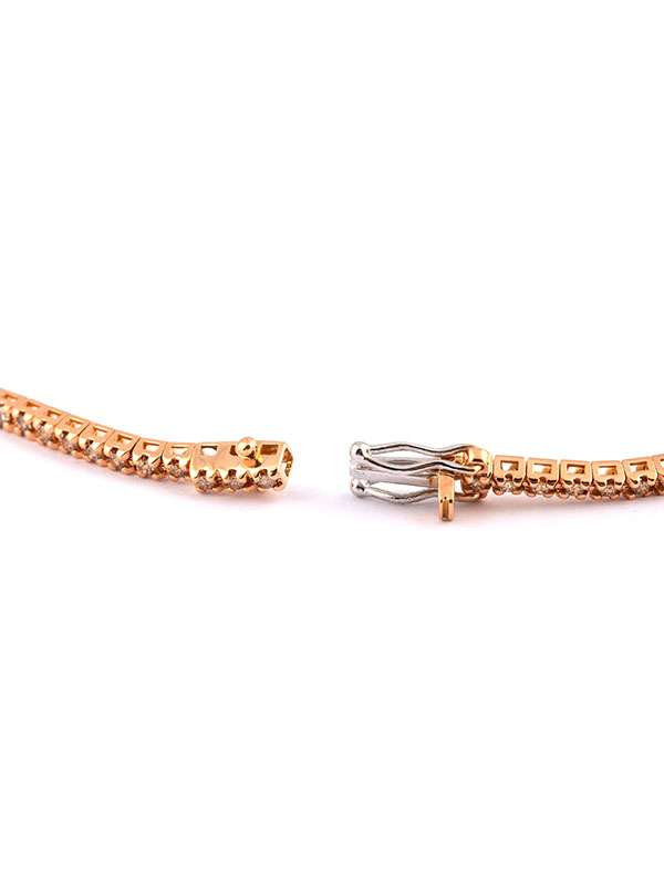 Gioiello firmato Crivelli. Bracciale tennis in oro rosa 18kt con 97 diamanti brown per un totale di carati 0,95. Lunghezza 20,5cm. Chiusura a scomparsa e fermaglio di sicurezza. Peso oro 18kt gr. 7,20.
