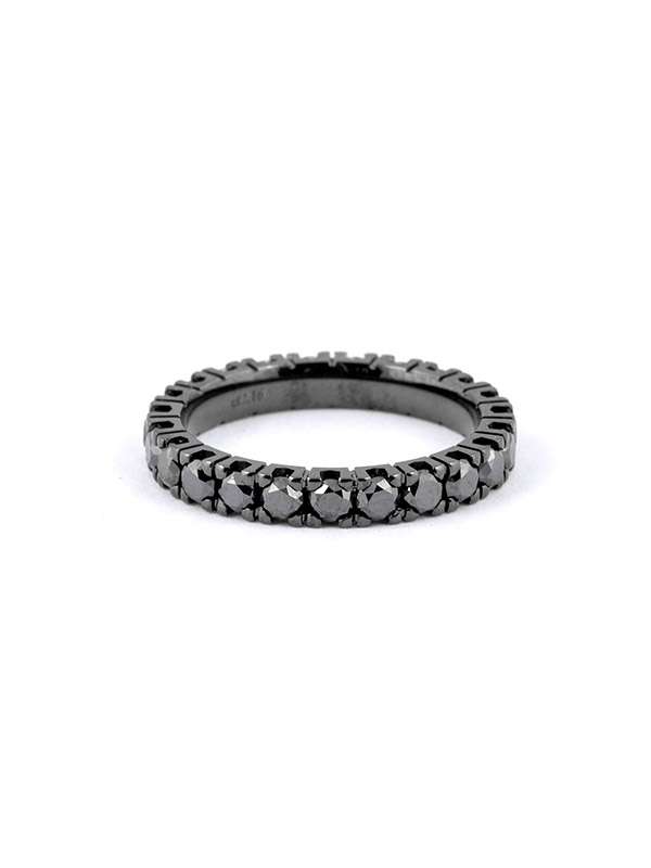 Fedina eternelle in oro bianco brunito nero 18kt con diamanti neri. Misura 12.