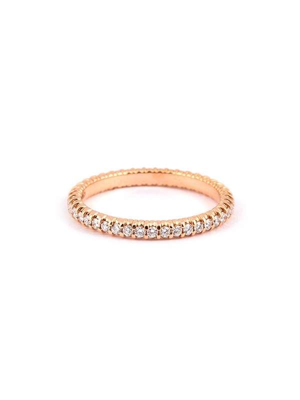 Fedina eternelle in oro rosa 18kt con diamanti. L'eternelle, o girodito, è un anello composto da pietre poste in tutta la circonferenza dell'anello: la più classica è indubbiamente quella realizzata in oro bianco 750% e diamanti naturali taglio brillante. Il numero delle pietre varia in base alla proporzione e alla misura. La montatura è realizzata a filo, ovvero ogni pietra è incastonata da 4 griffe. Previo preventivo concordato con noi, l'eternelle può essere realizzata con pietre di diversa caratura e di differente purezza, taglio e colore. Per qualsiasi necessità o richiesta particolare, o per prenotare un appuntamento in negozio per valutare il prodotto di persona, non esitate a contattarci, siamo a Vostra disposizione.