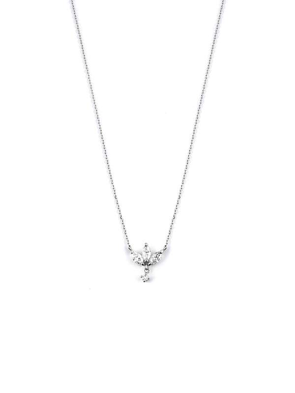 Girocollo Adamas in oro bianco 18kt con tre diamanti taglio marquise e un diamante taglio brillante. Catena a maglia rolò lunghezza regolabile. Chiusura a gancetto e saliscendi.
