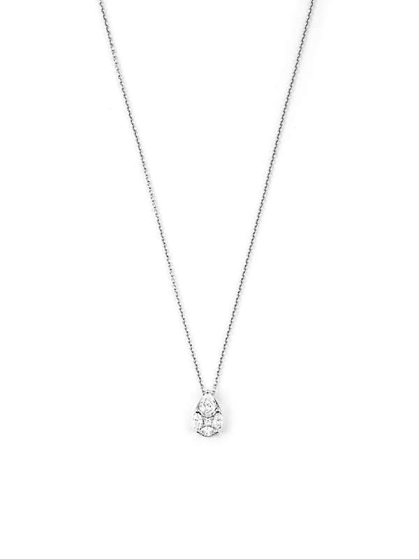 Girocollo in oro bianco 18kt con diamanti taglio multiplo disposti a goccia. Catena a maglia rolò lunghezza 42cm e chiusura a moschettone con secondo anellino per la regolazione della lunghezza.