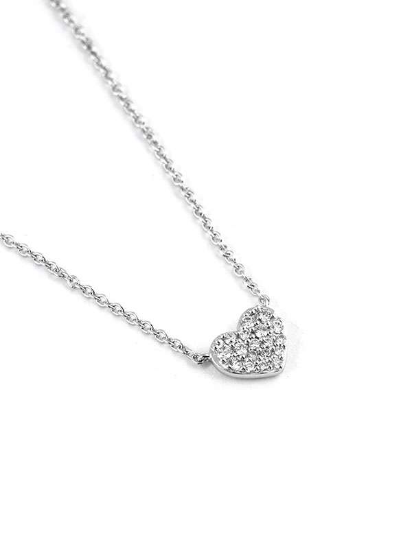 Gioiello firmato Crivelli. Girocollo in oro bianco 18kt con cuore decorato con pavé di diamanti bianchi per un totale di carati 0,09 colore G purezza SI1. Dimensione cuore 7mm x 5mm. Catena a maglia rolò cm. 42. Chiusura a gancetto. Secondo anellino per la regolazione della misura. Peso oro 18kt gr. 1,90.