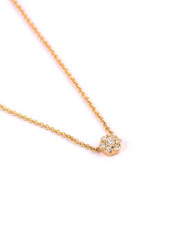 Gioiello firmato Crivelli. Girocollo in oro giallo 18kt con fiore decorato da diamanti bianchi taglio brillante per un totale di carati 0,10 colore G purezza SI1. Dimensione fiore 5mm x 5mm. Catena a maglia rolò cm. 42. Secondo anellino per la regolazione della misura. Peso oro 18kt gr. 1,60.