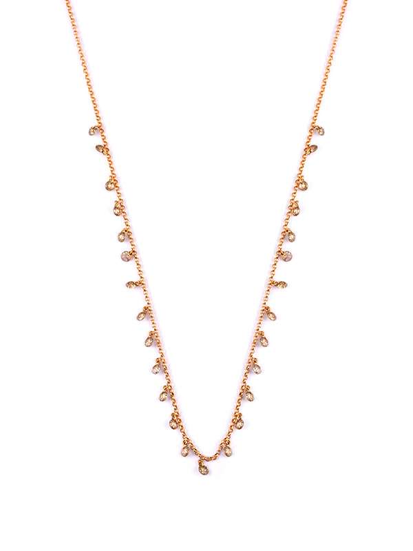 Girocollo in oro rosa 18kt con 28 piccoli diamanti brown pendenti. Catena maglia rolò 42cm. Chiusura saliscendi regolabile.