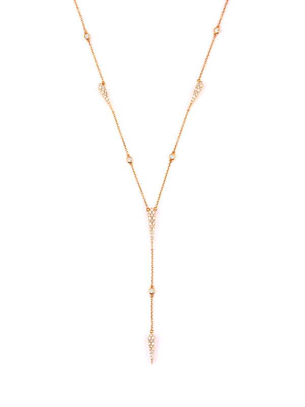 Girocollo in oro rosa 18kt con diamanti taglio brillante. Catena a maglia rolò decorata con piccoli diamanti. Lunghezza 42cm e pendente lunghezza 6cm. Chiusura a moschettone.