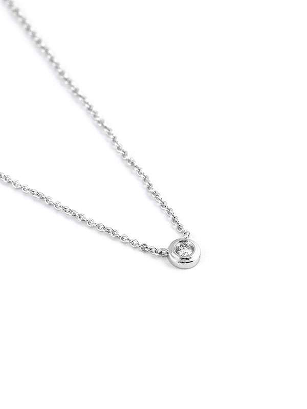 Gioiello firmato Crivelli. Girocollo punto luce in oro bianco 18kt con diamante taglio brillante per un totale di carati 0,05 colore G purezza SI1. Catena a maglia rolò cm. 42. Chiusura a gancetto. Peso oro 18kt gr. 1,60.