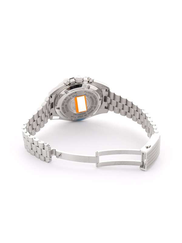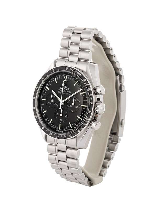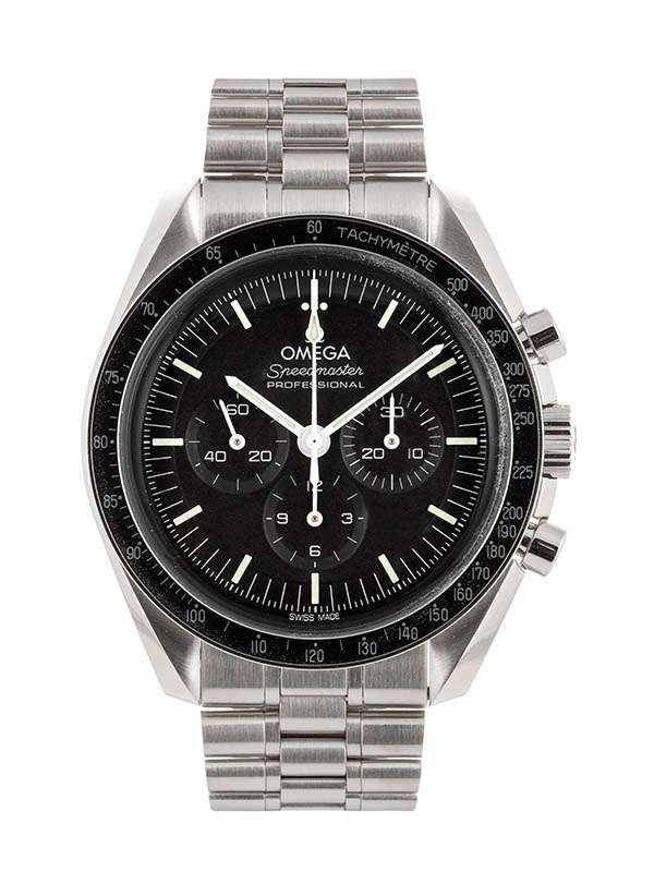 Modello con cassa in acciaio inossidabile. Bracciale spazzolato a 5 maglie incurvate per fila. Lunetta nera con scala tachimetrica. Quadrante step nero e indice Dot over 90 sull’anello della lunetta in alluminio anodizzato. Il segnatempo è animato dal calibro OMEGA Co-Axial Master Chronometer 3861, che alimenta il contatore dei piccoli secondi, i contatori dei 30 minuti e delle 12 ore e la lancetta cronografica centrale. Vetro esalite. Medaglione con ippocampo goffrato sul fondello in acciaio. Movimento meccanico a carica manuale. Impermeabile fino a 50 metri. Lo Speedmaster Moonwatch è uno dei segnatempo più iconici al mondo. Avendo partecipato a tutte e sei le missioni lunari, il leggendario cronografo incarna alla perfezione lo spirito avventuroso e pionieristico del marchio. Ispirato allo Speedmaster di 4a generazione indossato sulla Luna.