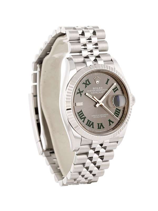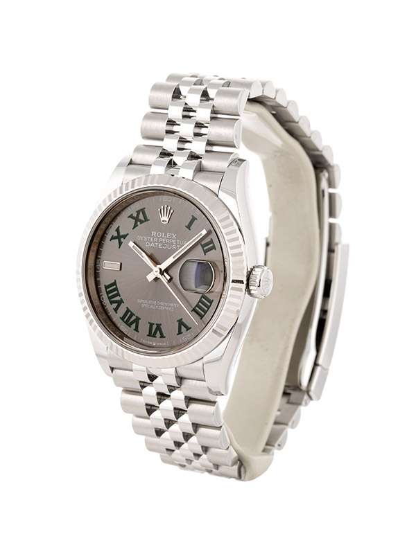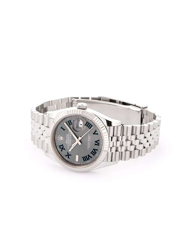 Modello con cassa in acciaio Oystersteel e oro bianco 18kt. Bracciale Jubilée in acciaio con fermaglio Oysterclasp con chiusura pieghevole e maglia di prolunga rapida Easylink di 5 mm. Lunetta zigrinata in oro bianco 18kt. Quadrante WIMBLEDON ardesia con numeri romani. Lancette luminescenti. Datario a ore 3 e lente Cyclope. Carrure monoblocco. Fondello e corona entrambi a vite. Corona a vite con sistema di doppia impermeabilizzazione Twinlock. Funzioni ore minuti e secondi al centro. Data istantanea con correzione rapida. Arresto dei secondi per una regolazione precisa dell’ora. Autonomia circa 70 ore. Movimento meccanico a carica automatica. Vetro zaffiro antiscalfitture. Impermeabile. Orologio corredato di scatola e garanzia datata luglio 2024.