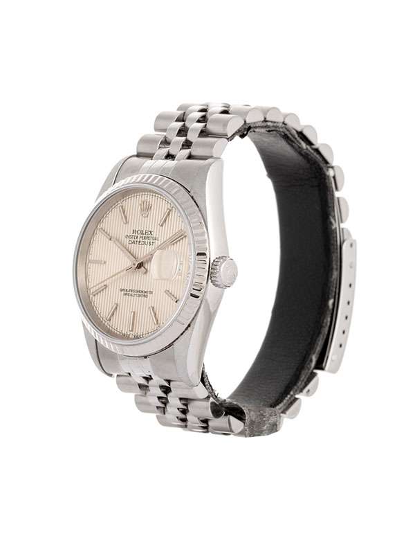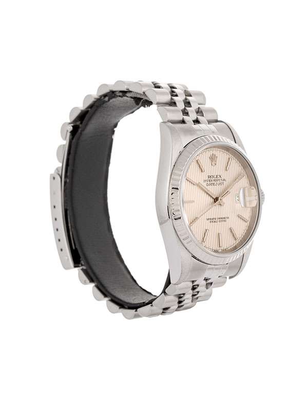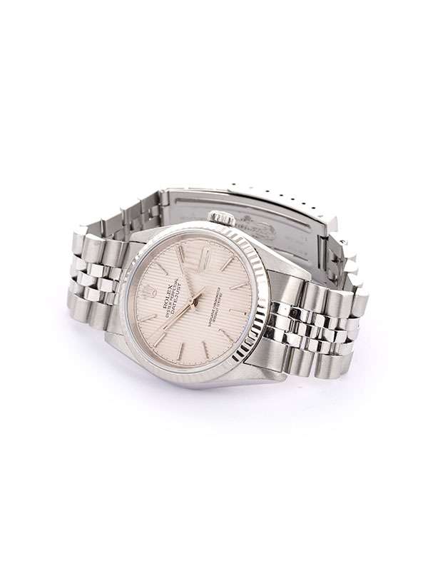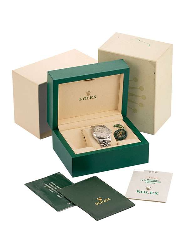 Modello con cassa in acciaio. Bracciale Jubilée in acciaio con chiusura déployante. Ghiera in oro bianco 18kt. Quadrante argenté con indici. Vetro zaffiro. Datario a ore 3 e lente Cyclope. Movimento meccanico a carica automatica. Orologio corredato di scatola e garanzia cartacea traforata anno 1996.