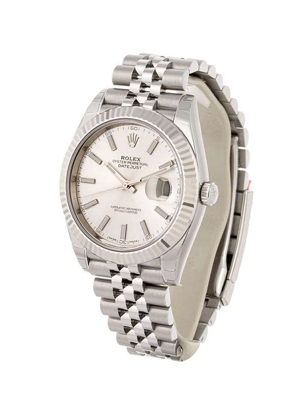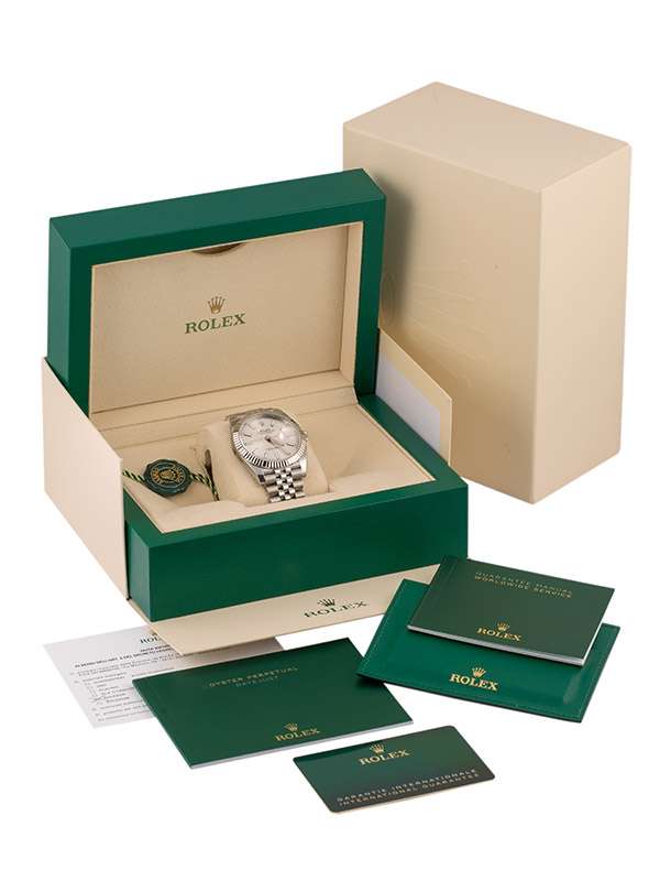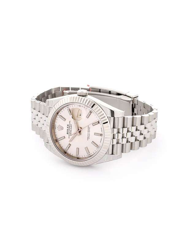 Modello con cassa in acciaio Oystersteel. Bracciale Jubilée in acciaio con fermaglio Oysterclasp con chiusura pieghevole e maglia di prolunga rapida Easylink di 5 mm. Ghiera zigrinata in oro bianco 18kt. Quadrante argenté con indici a bastone luminescenti. Datario a ore 3 e lente Cyclope. Corona di carica a vite con sistema di doppia impermeabilizzazione Twinlock. Funzioni ore minuti e secondi al centro. Data istantanea con correzione rapida. Arresto dei secondi per una regolazione precisa dell’ora. Autonomia circa 70 ore. Movimento meccanico a carica automatica. Vetro zaffiro antiscalfitture. Impermeabile fino a 100 metri.