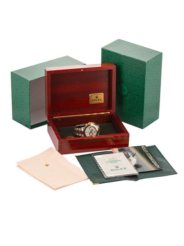 Modello con cassa in acciaio Oystersteel e oro giallo 18kt. Bracciale Oyster in acciaio e oro giallo 18kt con chiusura déployante. Quadrante bianco e contatori in oro. Vetro zaffiro. Movimento meccanico a carica automatica. Orologio FULL SET corredato di scatola in radica, portagaranzia, libretto e garanzia cartacea anno 1997. Service Rolex 2025.