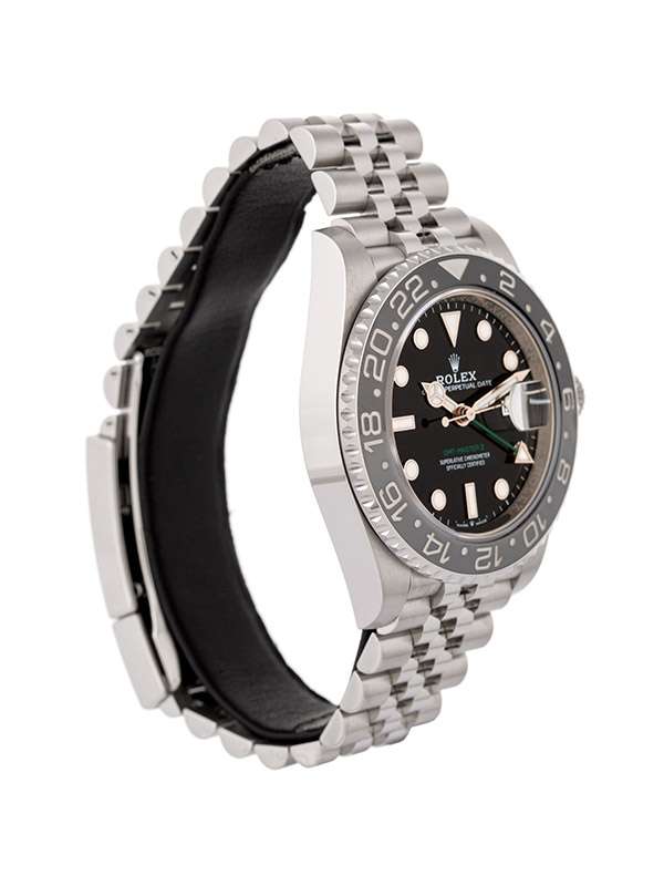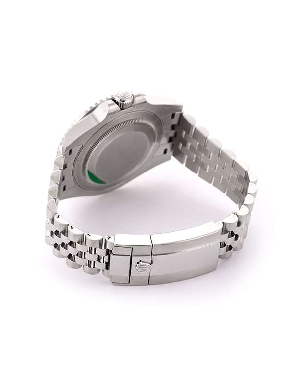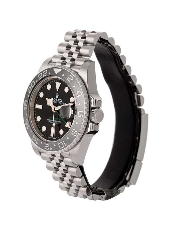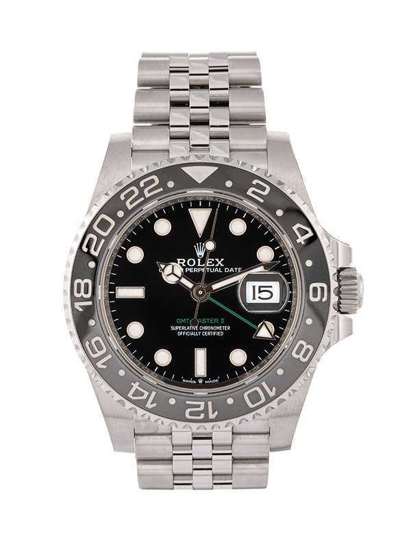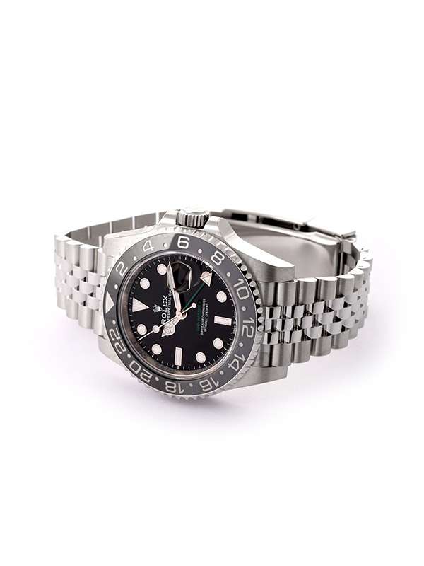 Modello con cassa in acciaio Oystersteel. Bracciale Jubilée (5 file) in acciaio Oystersteel. Fermaglio di sicurezza Oysterlock con chiusura pieghevole e maglia di prolunga rapida Easylink di 5 mm. Carrure monoblocco, fondello e corona entrambi a vite. Corona di carica a vite, con sistema di tripla impermeabilizzazione Triplock. Lunetta girevole bidirezionale graduata 24 ore. Disco Cerachrom bicolore grigio e nero in ceramica, numeri e graduazioni scavati. Quadrante nero. Visualizzazione ad alta leggibilità Chromalight con materiale luminescente blu a lunga durata. Funzioni ore, minuti e secondi al centro. Visualizzazione 24 ore. Secondo fuso orario mediante regolazione rapida e indipendente dalla lancetta delle ore. Data istantanea. Arresto dei secondi per una regolazione precisa dell’ora. Vetro zaffiro antiscalfitture. Movimento meccanico a carica automatica bidirezionale con rotore Perpetual. Calibro 3285. Riserva di carica circa 70 ore. Impermeabile fino a 100 metri.Questo modello presenta un quadrante nero e un disco della lunetta Cerachrom bicolore in ceramica grigia e nera. A completamento delle tradizionali lancette delle ore, dei minuti e dei secondi, il GMTMaster II esibisce una lancetta supplementare con punta a triangolo che effettua un giro del quadrante in 24 ore, così come una lunetta girevole bidirezionale graduata 24 ore.Questa lancetta 24 ore dal colore intenso indica l’ora di riferimento di un primo fuso orario di origine, leggibile sulla graduazione della lunetta. In viaggio, l’ora locale è indicata sul quadrante tramite la tradizionale lancetta delle ore che può essere regolata con facilità, in entrambe le direzioni e a salti di un’ora, grazie a un meccanismo comandato dalla corona di carica. La regolazione dell’ora locale avviene in modo indipendente dalla lancetta dei minuti e dei secondi. Ciò permette ai viaggiatori di regolare il nuovo fuso orario senza dover rinunciare alla precisione del loro orologio.Sul quadrante laccato nero, la dicitura GMTMaster II si distingue per il suo colore verde, una tonalità ripresa dalla lancetta 24 ore. Come tutti gli orologi Professionali di Rolex, il GMTMaster II garantisce un’ottima leggibilità in ogni circostanza, specialmente al buio, grazie alla visualizzazione Chromalight. Le ampie lancette e gli indici di grandi dimensioni dalle forme semplici, triangoli, tondi e rettangoli, sono rivestiti di una sostanza luminescente a emissioni di lunga durata.
