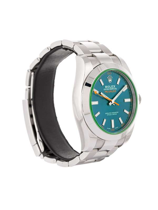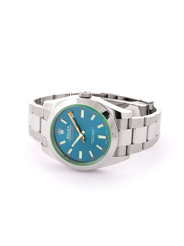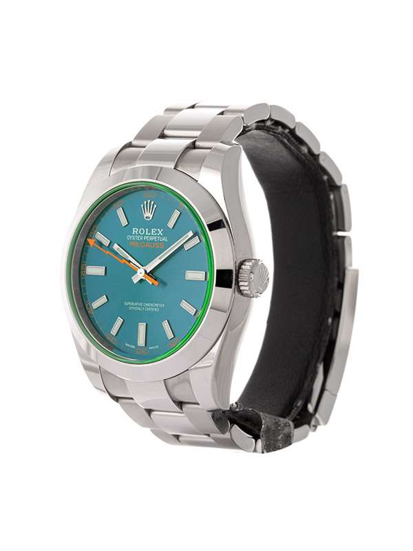 Modello con cassa in acciaio Oystersteel. Cassa interna supplementare in ferro dolce resistente ai campi magnetici fino a 1000 Gauss. Bracciale Oyster in acciaio con fermaglio Oysterclasp e chiusura pieghevole e maglia di prolunga rapida Easylink di 5 mm. Lunetta liscia in acciaio. Quadrante blu elettrico che richiama l’emblematica lancetta dei secondi a forma di saetta in combinazione con vetro zaffiro verde. Carrure monoblocco fondello e corona entrambi a vite. Funzioni ore minuti e secondi al centro. Arresto dei secondi per una regolazione precisa dell’ora. Autonomia circa 48 ore. Movimento meccanico a carica automatica. Vetro zaffiro di colore verde. Impermeabile. Orologio corredato di scatola, libretti e garanzia datata anno 2018.