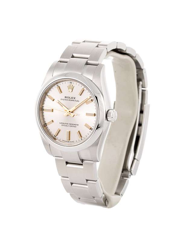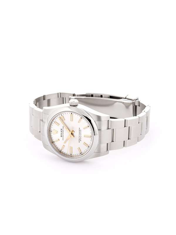 Modello con cassa in acciaio Oystersteel. Bracciale Oyster in acciaio con fermaglio Oysterclasp con chiusura pieghevole e maglia di prolunga rapida Easylink di 5 mm. Carrure monoblocco, fondello e corona entrambi a vite. Lunetta bombata in acciaio. Corona di carica a vite, con sistema di doppia impermeabilizzazione Twinlock. Quadrante argenté con indici. Visualizzazione ad alta leggibilità Chromalight con materiale luminescente blu a lunga durata. Funzioni ore, minuti e secondi al centro. Data istantanea con correzione rapida. Arresto dei secondi per una regolazione precisa dell’ora. Vetro zaffiro antiscalfitture. Movimento meccanico a carica automatica. Calibro 2232. Impermeabile fino a 100 metri.
