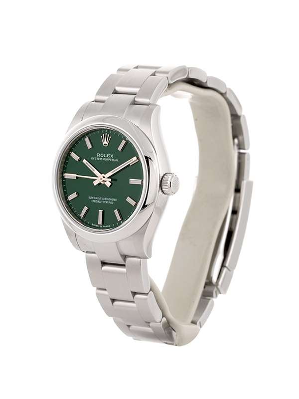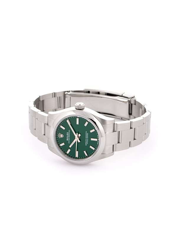 Modello con cassa in acciaio Oystersteel. Bracciale Oyster in acciaio con fermaglio Oysterclasp con chiusura pieghevole e maglia di prolunga rapida Easylink di 5 mm. Carrure monoblocco, fondello e corona entrambi a vite. Corona di carica a vite, con sistema di doppia impermeabilizzazione Twinlock. Lunetta bombata in acciaio. Quadrante verde. Visualizzazione ad alta leggibilità Chromalight con materiale luminescente blu a lunga durata. Funzioni ore, minuti e secondi al centro. Data istantanea con correzione rapida. Arresto dei secondi per una regolazione precisa dell’ora. Vetro zaffiro antiscalfitture. Movimento meccanico a carica automatica. Riserva di carica circa 55 ore Impermeabile fino a 100 metri.