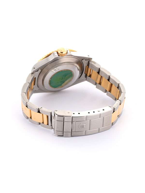 Modello con cassa in acciaio e oro giallo 18kt. Bracciale Oyster in acciaio e oro giallo 18kt con chiusura déployante. Lunetta in bachelite blu con incisi i tempi di immersione. Quadrante argenté SULTAN DIAL con diamanti. Datario a ore 3 e lente Cyclope. Movimento meccanico a carica automatica. Vetro zaffiro. Orologio corredato di scatola e garanzia cartacea traforata anno 1996.