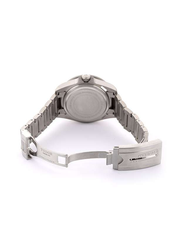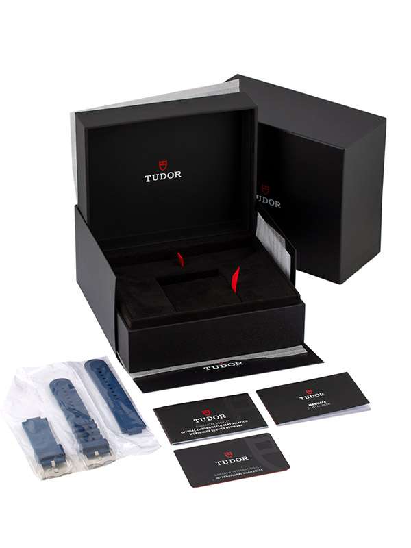 Modello con cassa in titanio e acciaio finitura satinata. Bracciale in titanio con chiusura pieghevole e fermaglio di sicurezza in acciaio, con sistema di prolunga sviluppato e brevettato da TUDOR. Cinturino addizionale in caucciù blu con fibbia ad ardiglione ed elemento supplementare di prolunga, incluso nell’astuccio. Corona di carica in titanio con il logo TUDOR in rilievo. Lunetta girevole unidirezionale in titanio graduata 60 minuti con disco in ceramica blu opaca, graduazioni con materiale luminescente bianco. Quadrante blu con indici bianchi. Datario a ore 3. Vetro zaffiro. Movimento meccanico a carica automatica con rotore bidirezionale. Calibro di Manifattura MT5612 (COSC). Autonomia di circa 70 ore. Valvola per la fuoriuscita dell’elio a ore 9. Impermeabile fino a 500 metri.
